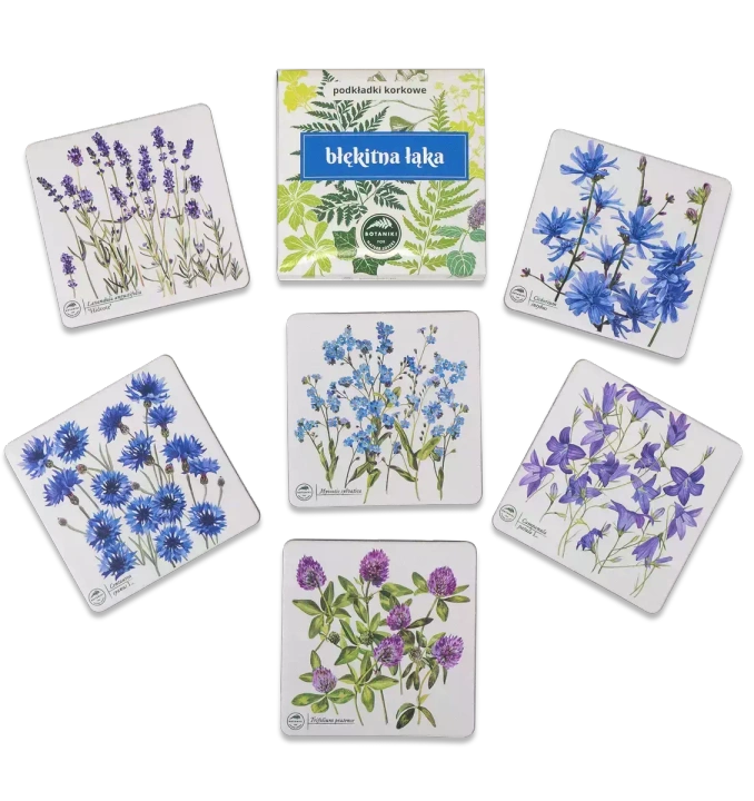 - A set of 6 pieces of cork coasters measuring 10x10 cm. Cork coasters with floral print are a great gift idea for a plant person. The coasters are 3 mm thick, made of a layer of cork and cardboard, with a matte film on top.