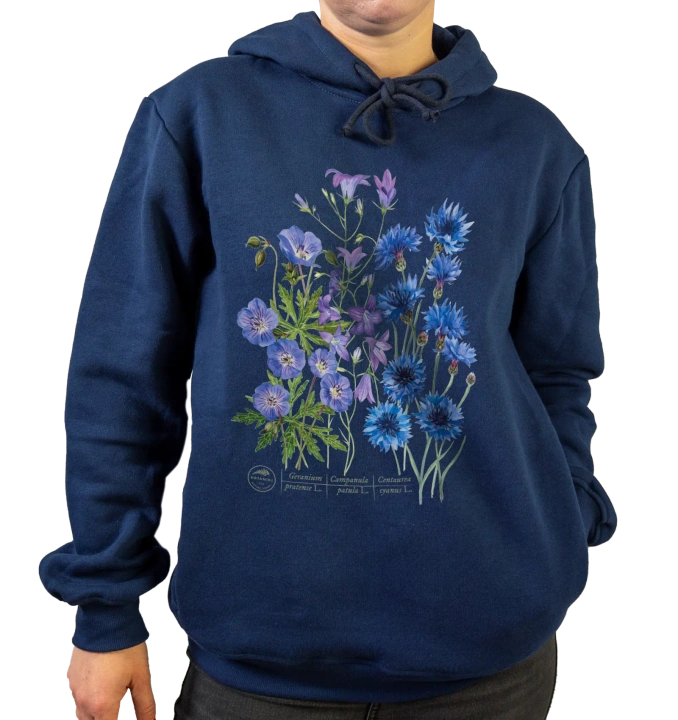- Premium hoodie with a floral motif sewn in a local sewing room from a draped knit fabric made in Poland. Large, durable and clear print made with modern DTF technology. Knitted fabric composition: 80% cotton, 20% polyester.
