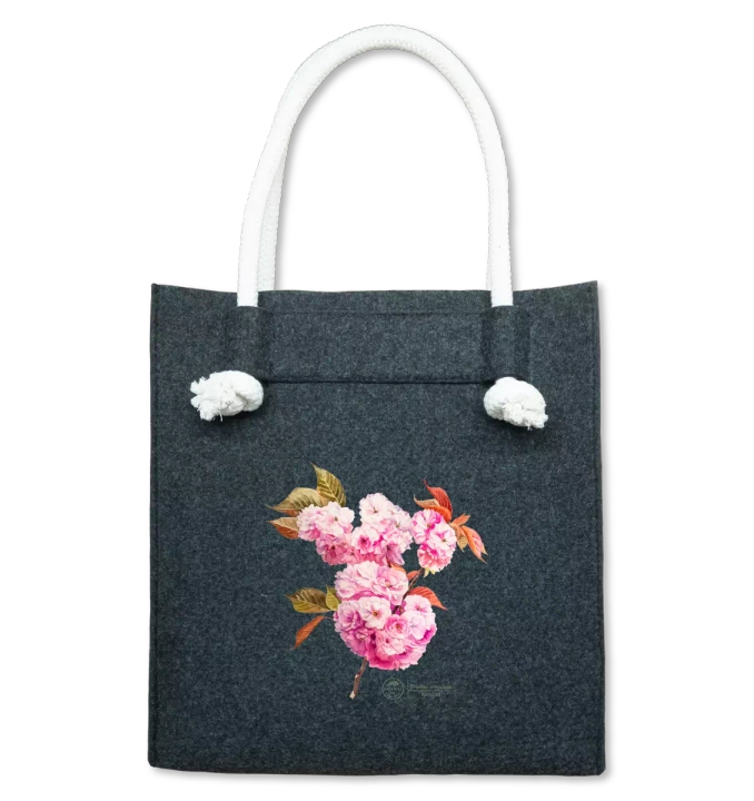 Original illustrations inspired by old herbariums, precisely printed, add a unique character. The botaniki felt bag is a stylish and practical wardrobe element for all nature lovers.