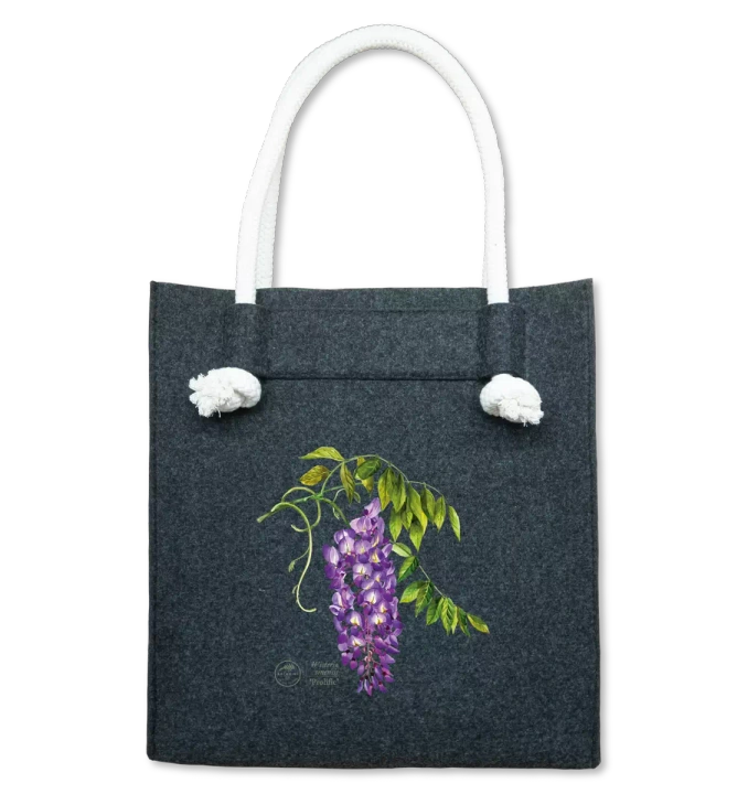 Original illustrations inspired by old herbariums, precisely printed, add a unique character. The botaniki felt bag is a stylish and practical wardrobe element for all nature lovers.