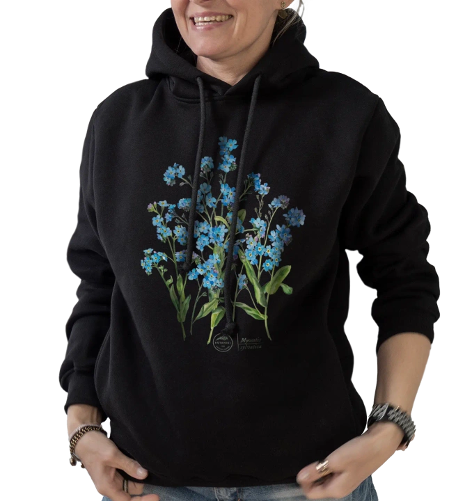 - Premium hoodie with a floral motif sewn in a local sewing room from a draped knit fabric made in Poland. Large, durable and clear print made with modern DTF technology. Knitted fabric composition: 80% cotton, 20% polyester.