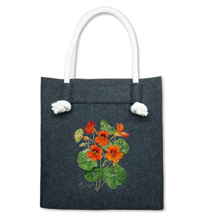 Original illustrations inspired by old herbariums, precisely printed, add a unique character. The botaniki felt bag is a stylish and practical wardrobe element for all nature lovers.