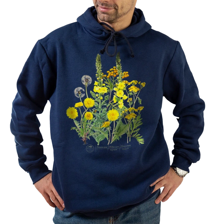 - Premium hoodie with a floral motif sewn in a local sewing room from a draped knit fabric made in Poland. Large, durable and clear print made with modern DTF technology. Knitted fabric composition: 80% cotton, 20% polyester.