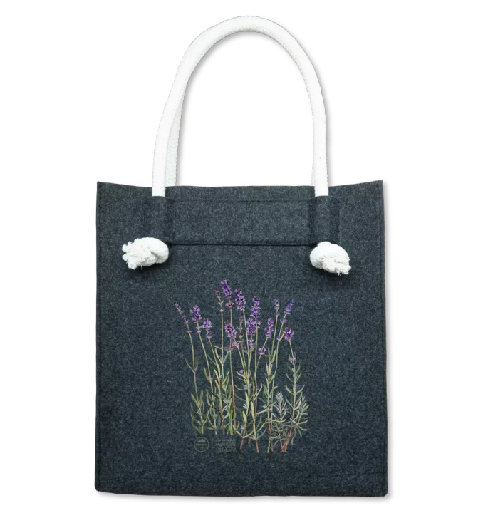 Original illustrations inspired by old herbariums, precisely printed, add a unique character. The botaniki felt bag is a stylish and practical wardrobe element for all nature lovers.