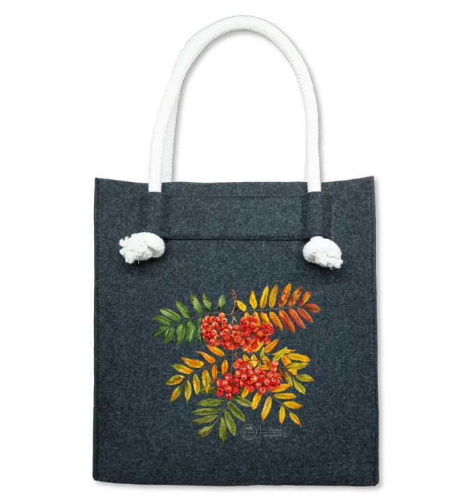 Original illustrations inspired by old herbariums, precisely printed, add a unique character. The botaniki felt bag is a stylish and practical wardrobe element for all nature lovers.