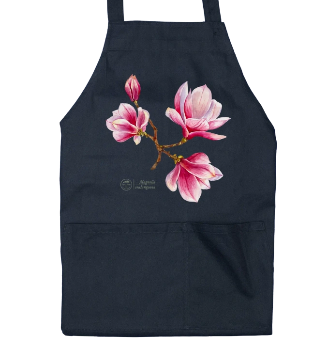 A practical apron with pockets made from organic cotton, decorated with original botanical motifs, for plant lovers.