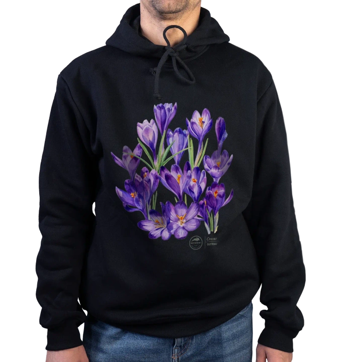 - Premium hoodie with a floral motif sewn in a local sewing room from a draped knit fabric made in Poland. Large, durable and clear print made with modern DTF technology. Knitted fabric composition: 80% cotton, 20% polyester.