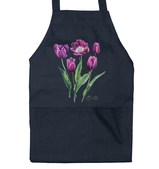 - A practical apron with pockets made from organic cotton, decorated with original botanical motifs, for plant lovers.