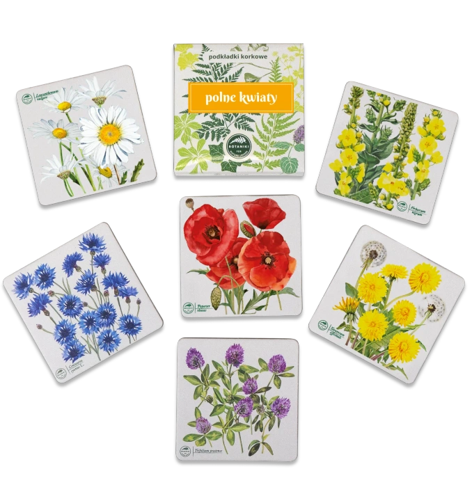 - A set of 6 pieces of cork coasters measuring 10x10 cm. Cork coasters with floral print are a great gift idea for a plant person. The coasters are 3 mm thick, made of a layer of cork and cardboard, with a matte film on top.